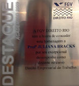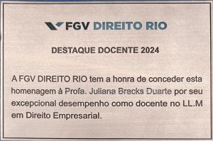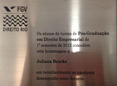 O desempenho de Juliana Bracks como professora também foi reconhecido na Fundação Getúlio Vargas em diversos anos