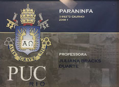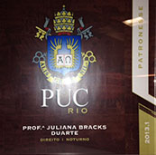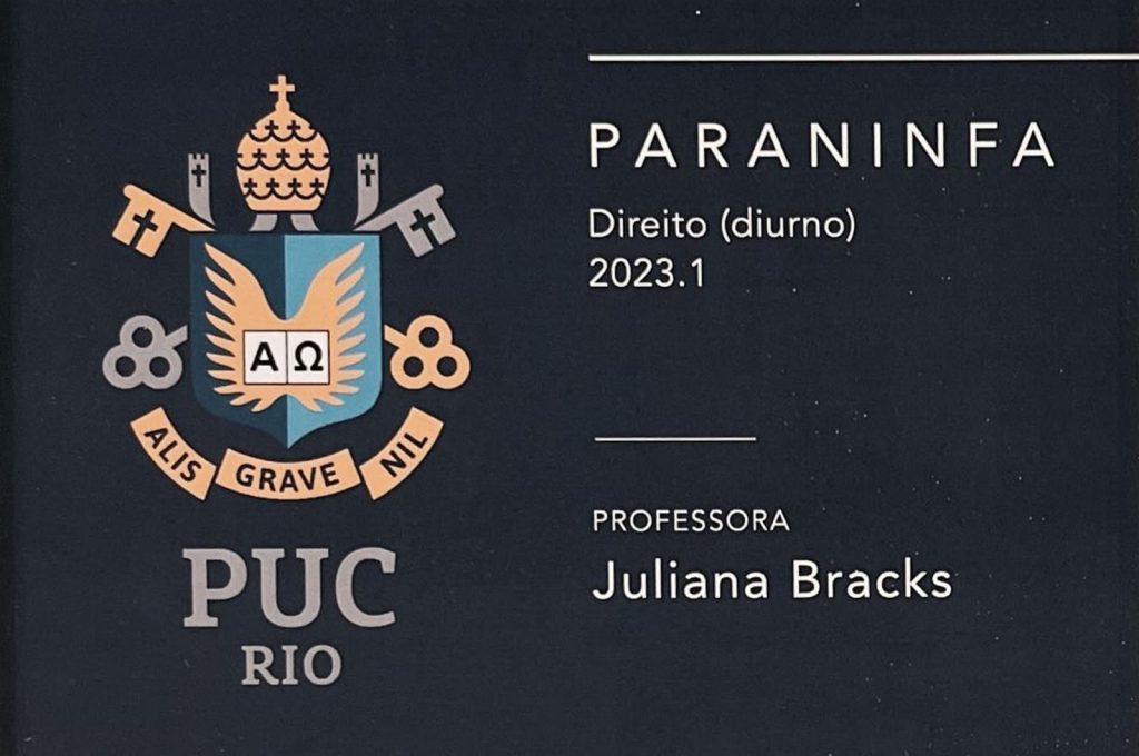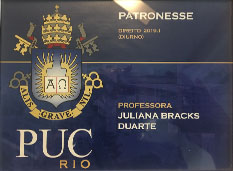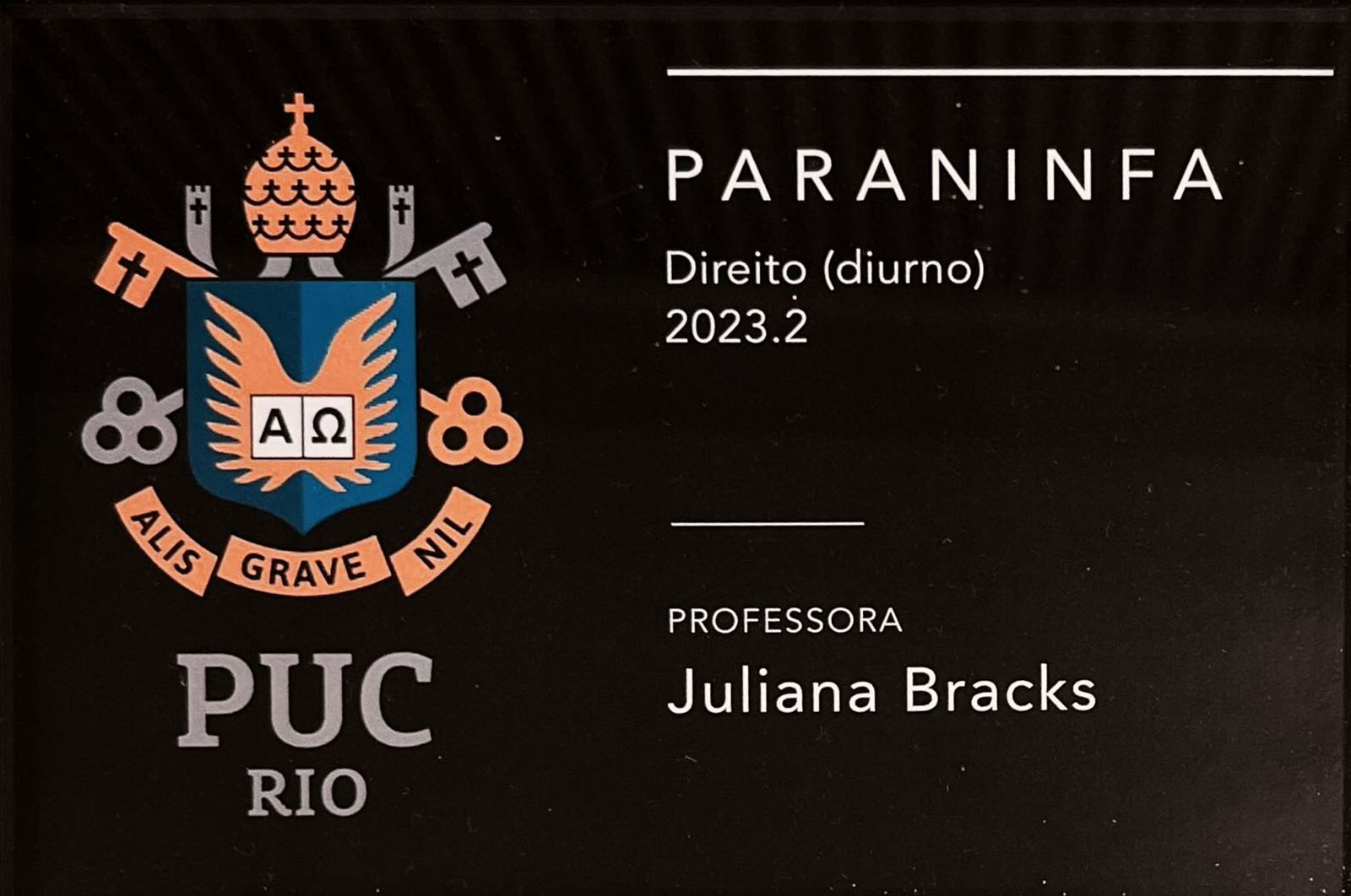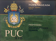 Juliana Bracks é uma das mais admiradas professoras da PUC-RJ, sendo eleita e homenageada pelos alunos da Instituição em diversos anos como Paraninfa e Patronesse.