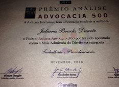 O Bracks Advogados Associados foi considerado um dos escritórios mais admirados do Brasil na área trabalhista de 2016, assim como Juliana Bracks foi considerada uma das advogadas mais admiradas do Brasil no mesmo ano.